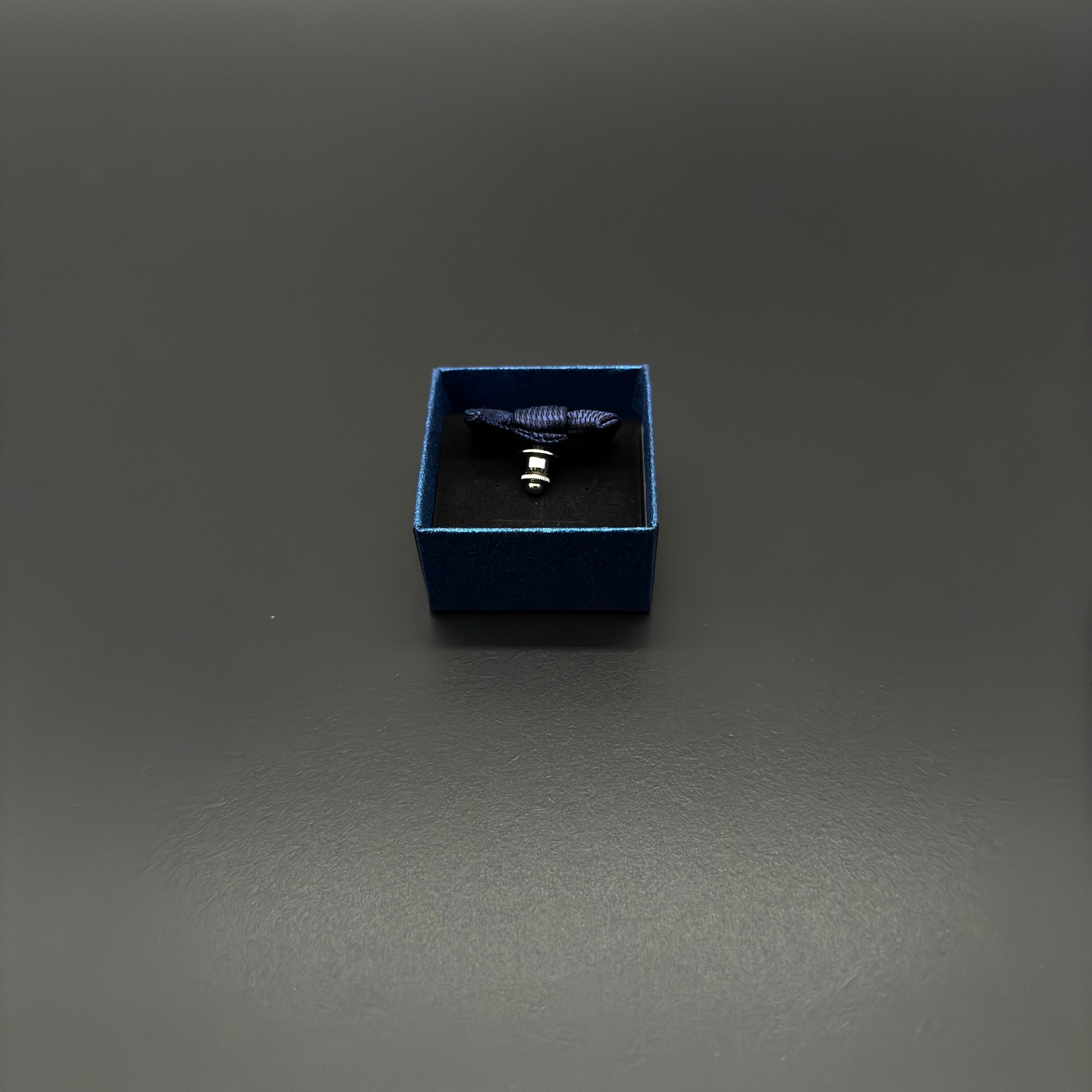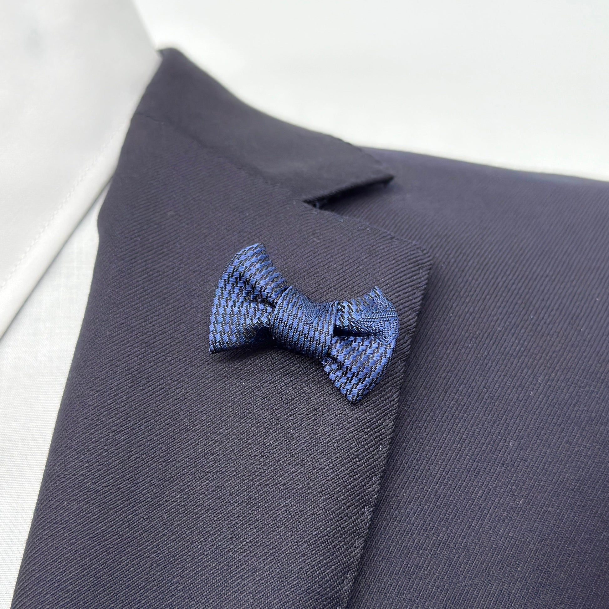 ネクタイシルクを使用した小さな蝶ネクタイ型のタイタックピンです。