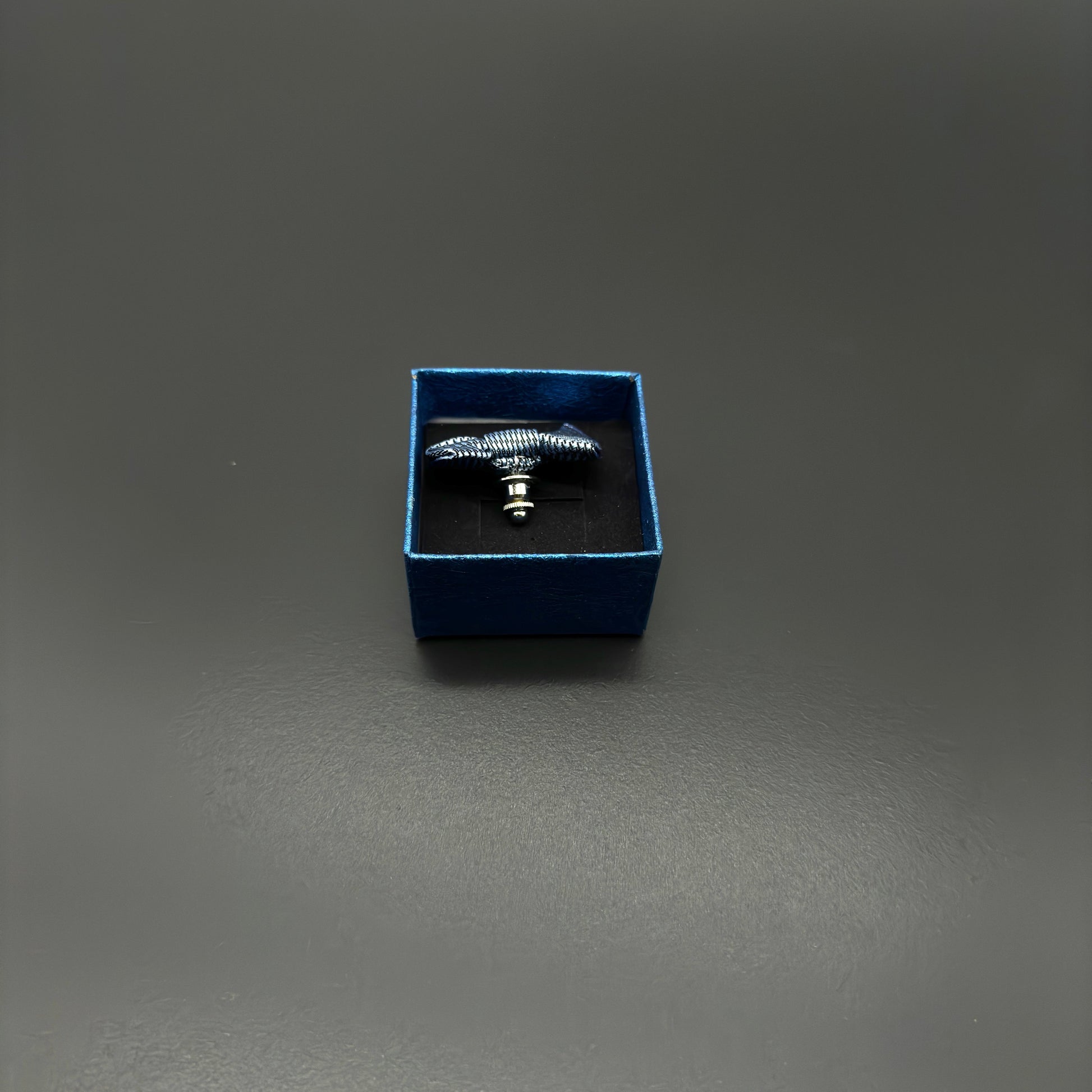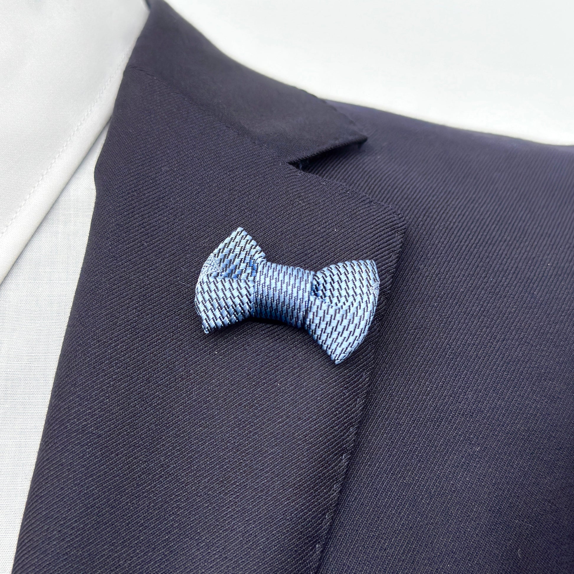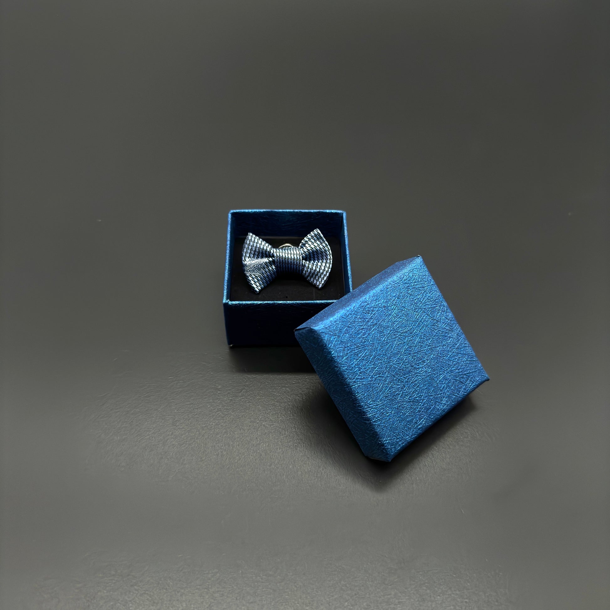 ネクタイシルクを使用した小さな蝶ネクタイ型のタイタックピンです。