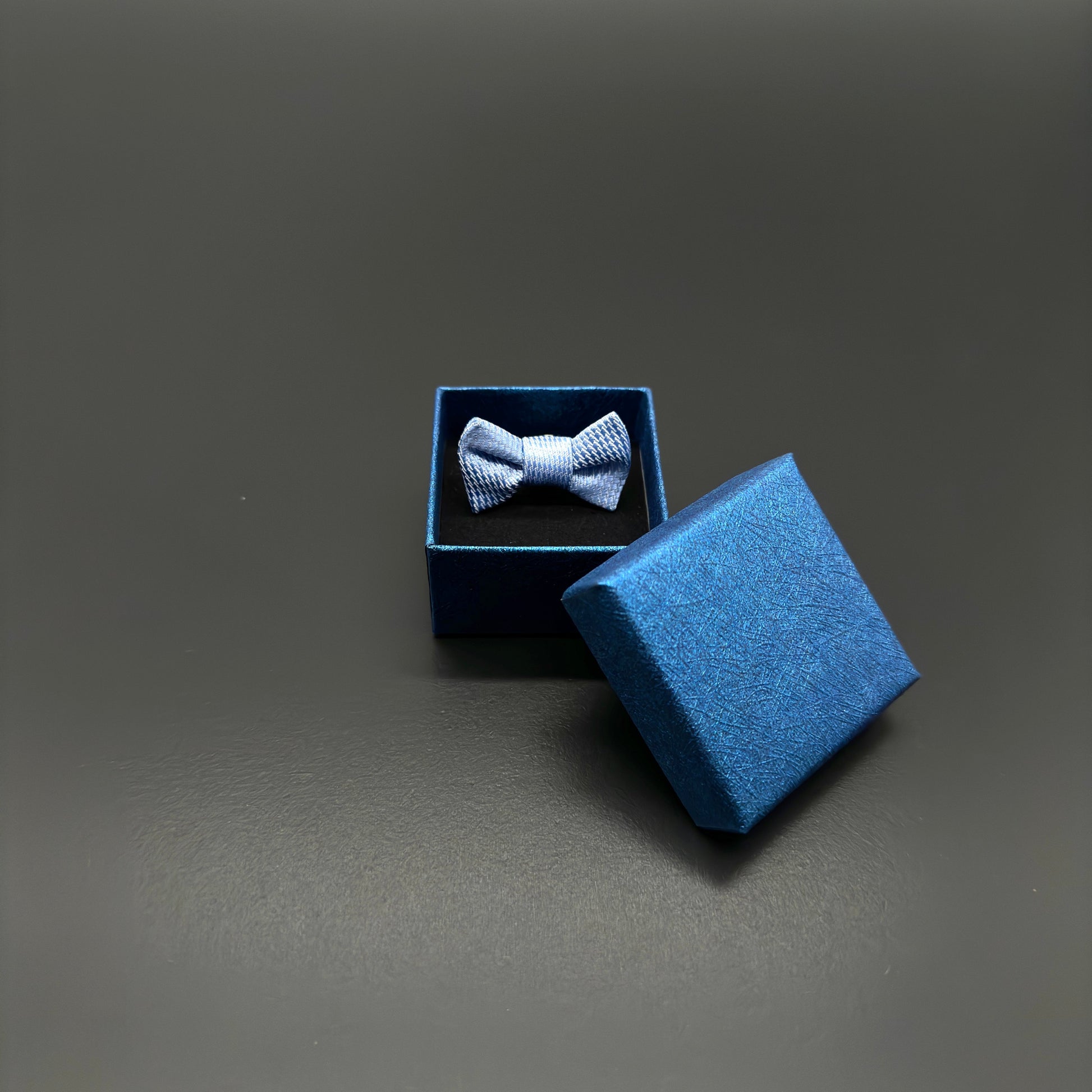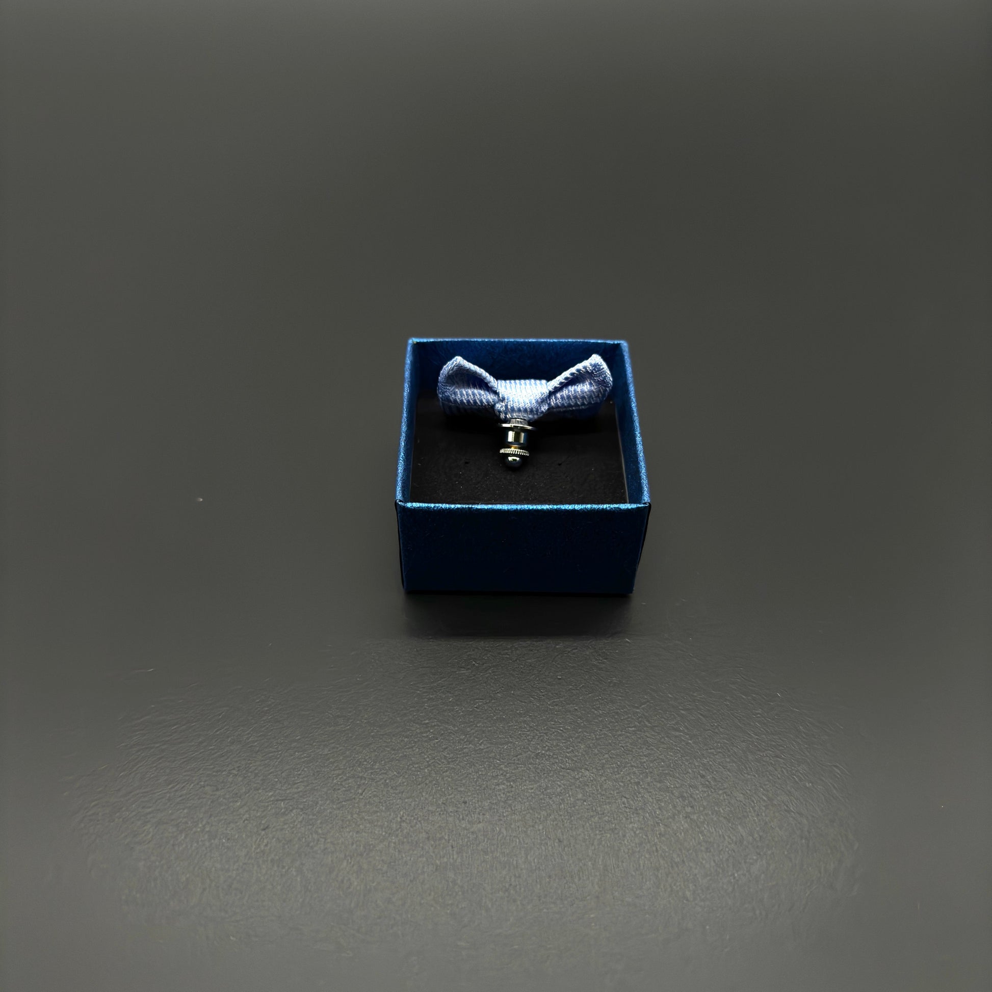 ネクタイシルクを使用した小さな蝶ネクタイ型のタイタックピンです。