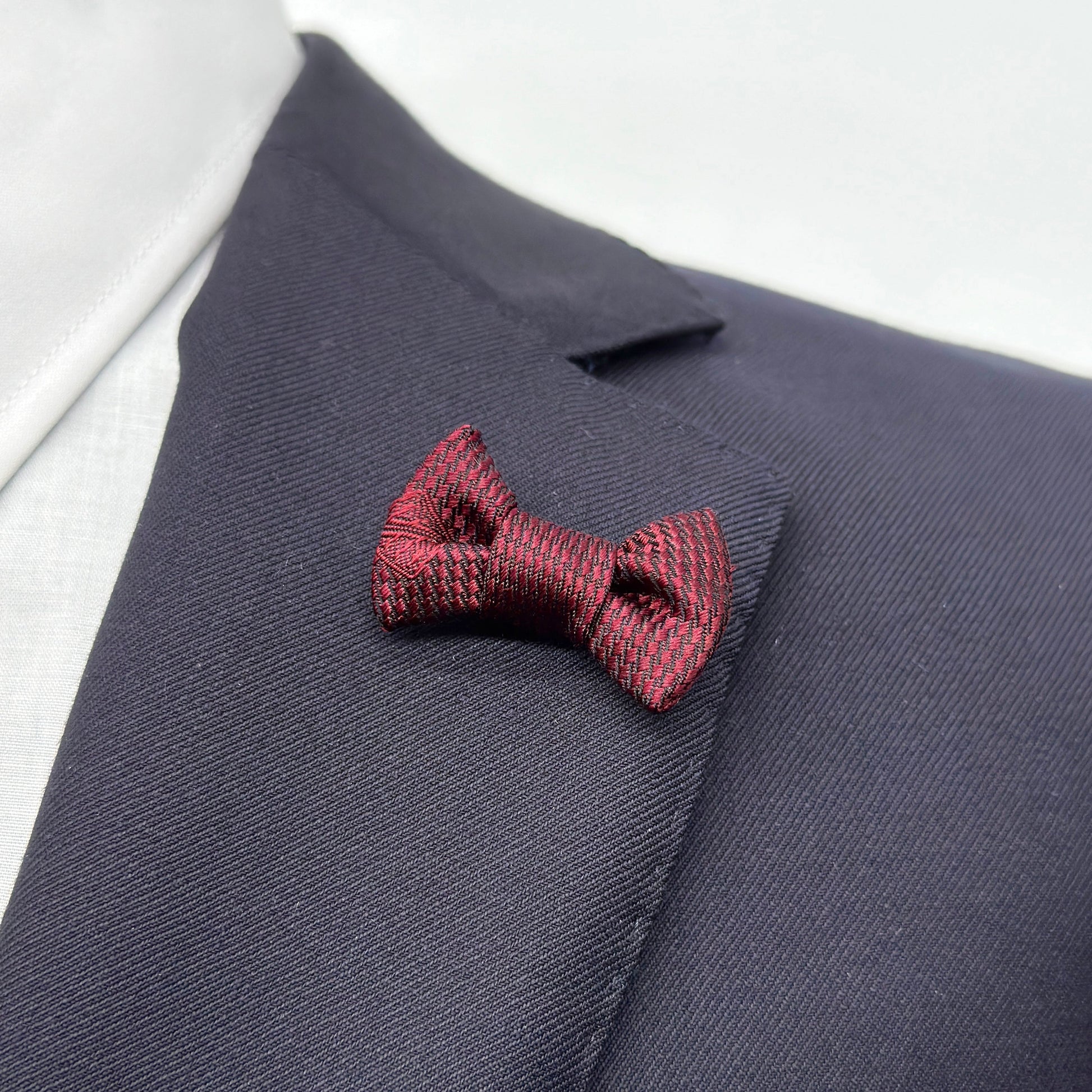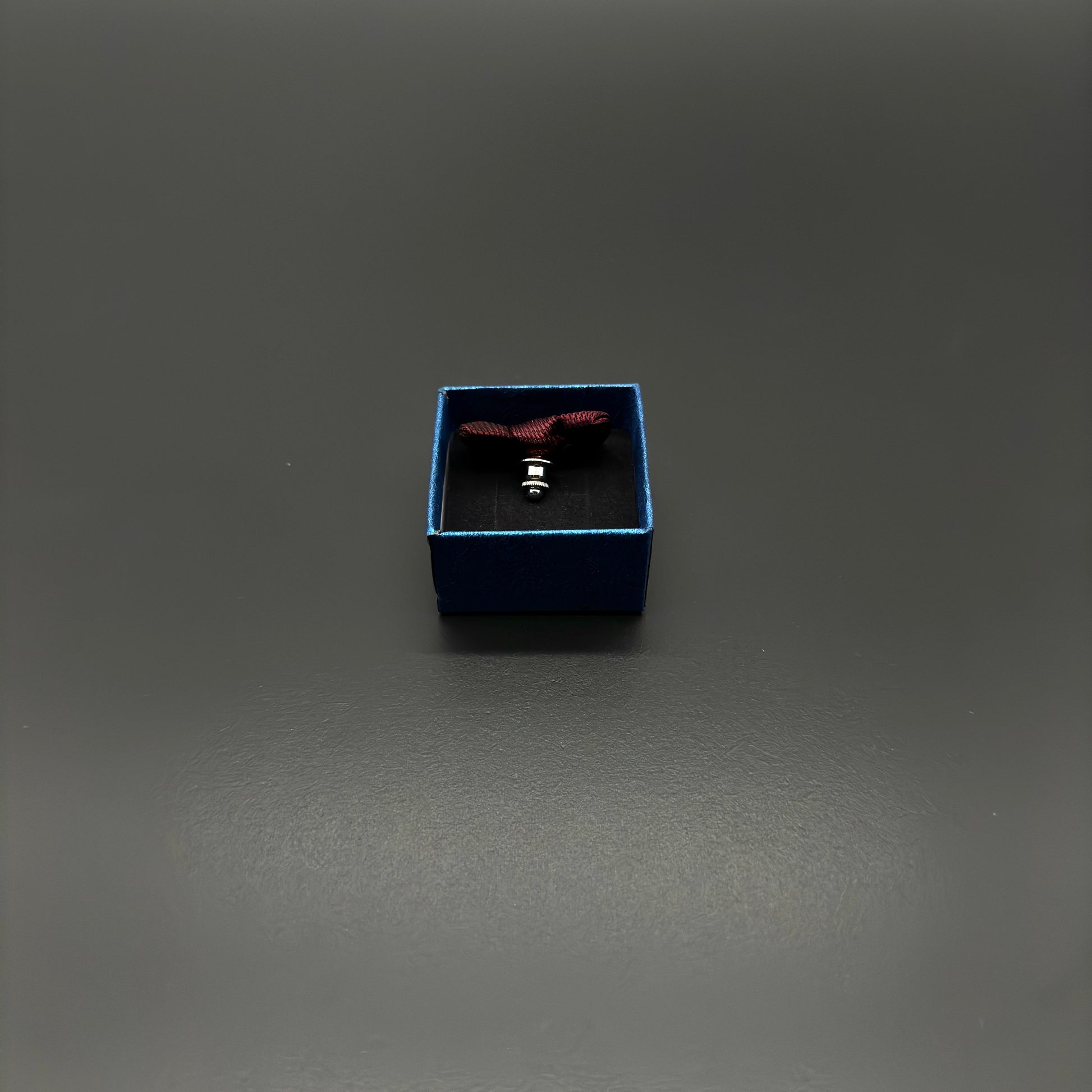 ネクタイシルクを使用した小さな蝶ネクタイ型のタイタックピンです。