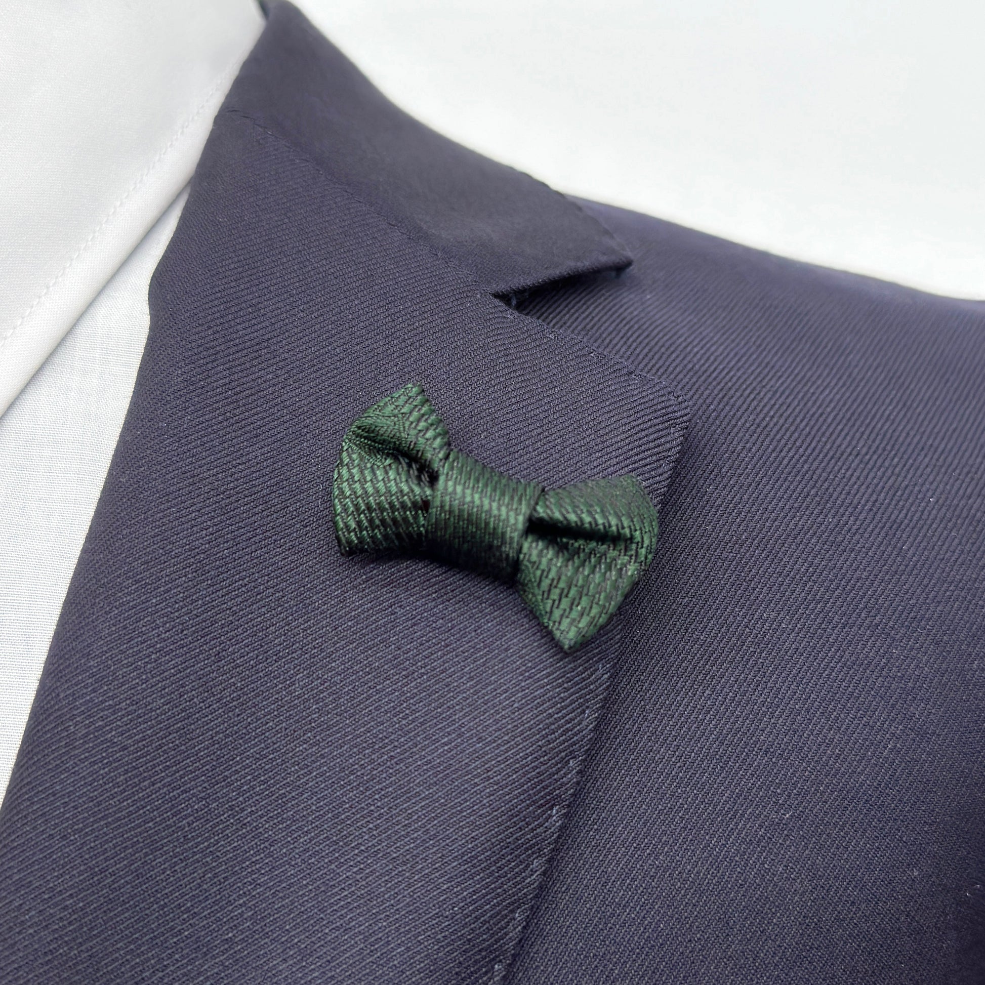 ネクタイシルクを使用した小さな蝶ネクタイ型のタイタックピンです。