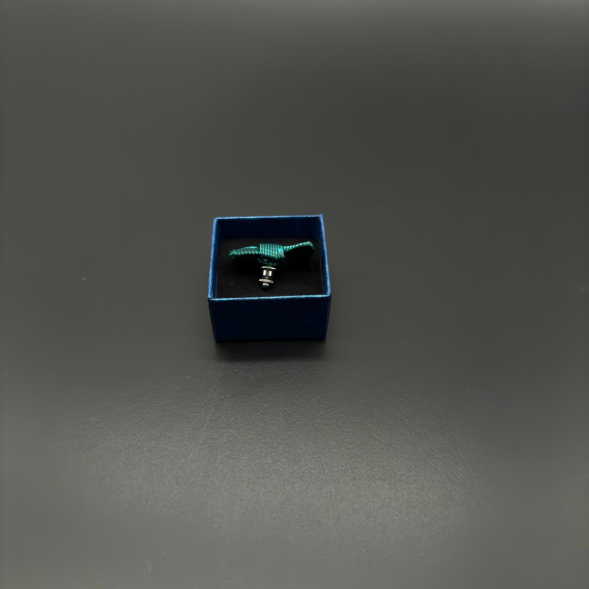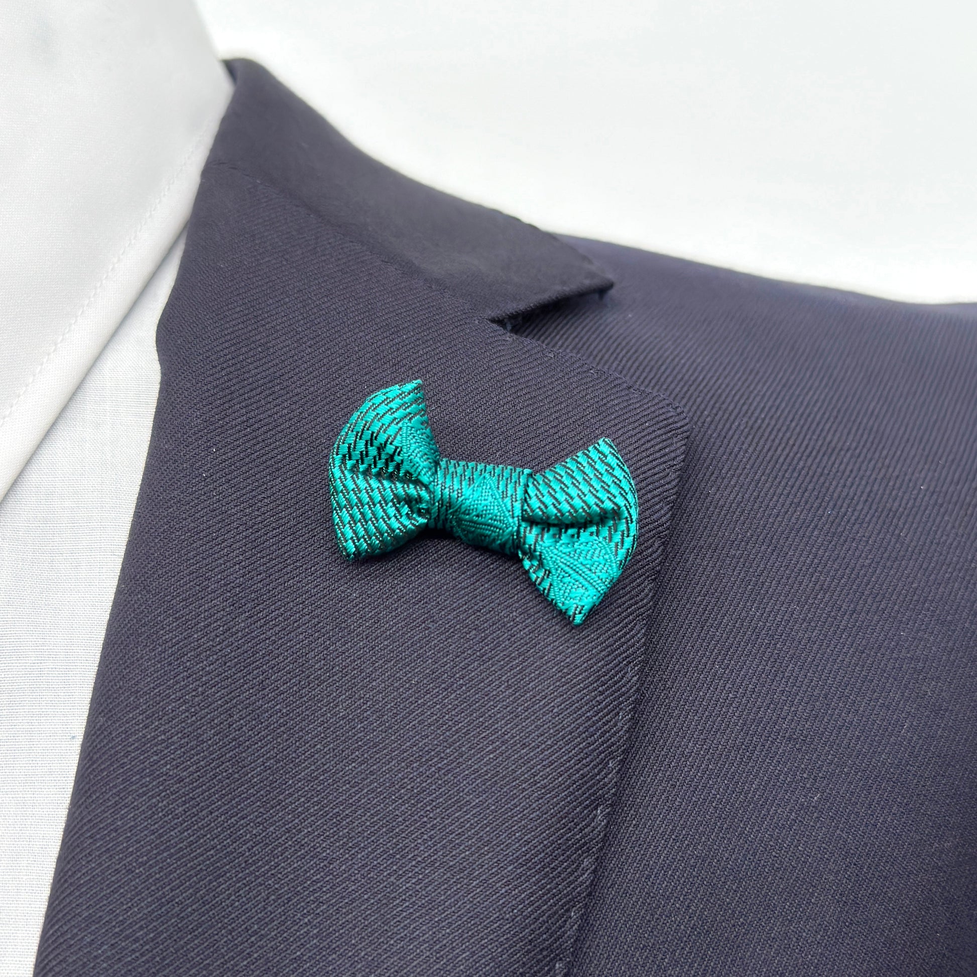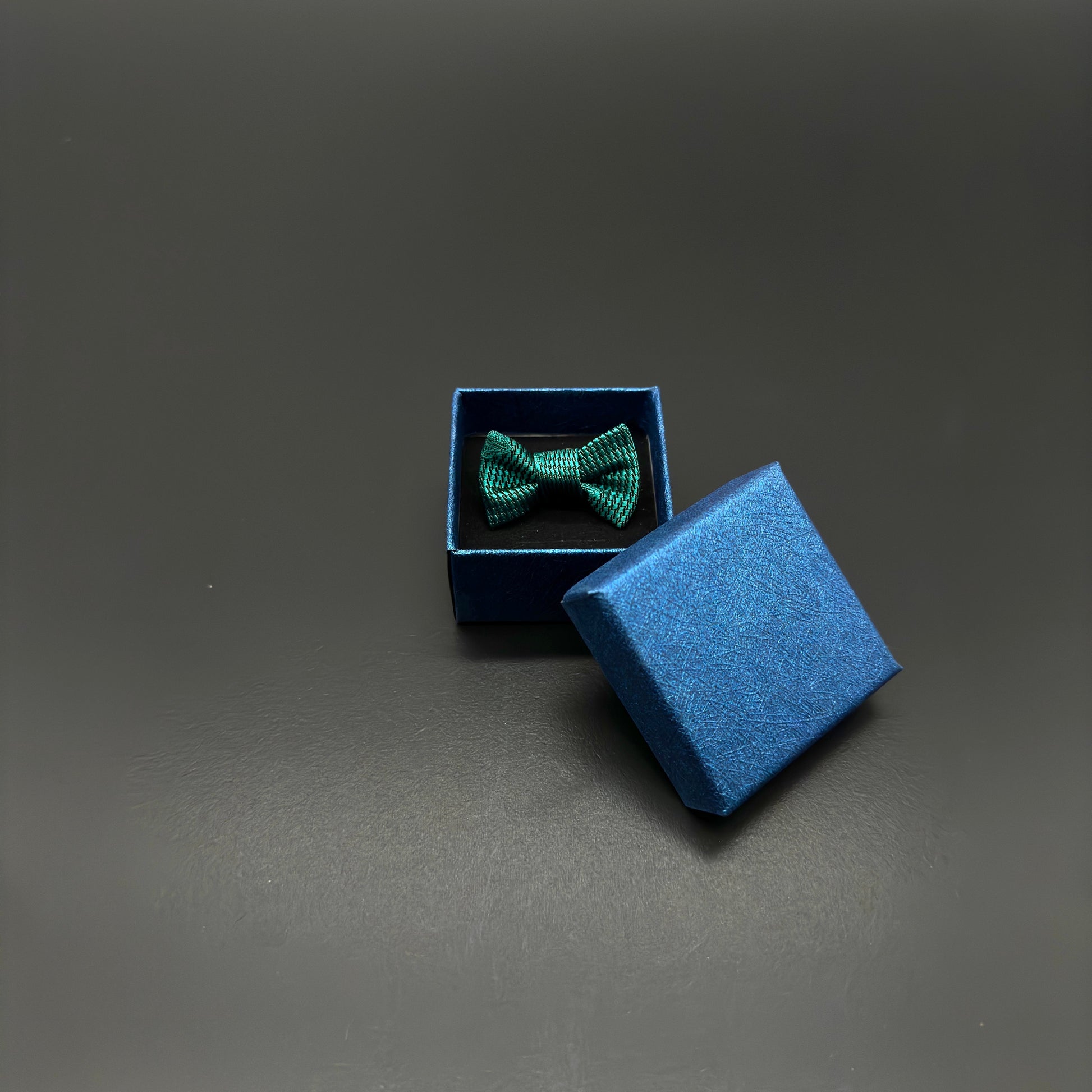 ネクタイシルクを使用した小さな蝶ネクタイ型のタイタックピンです。
