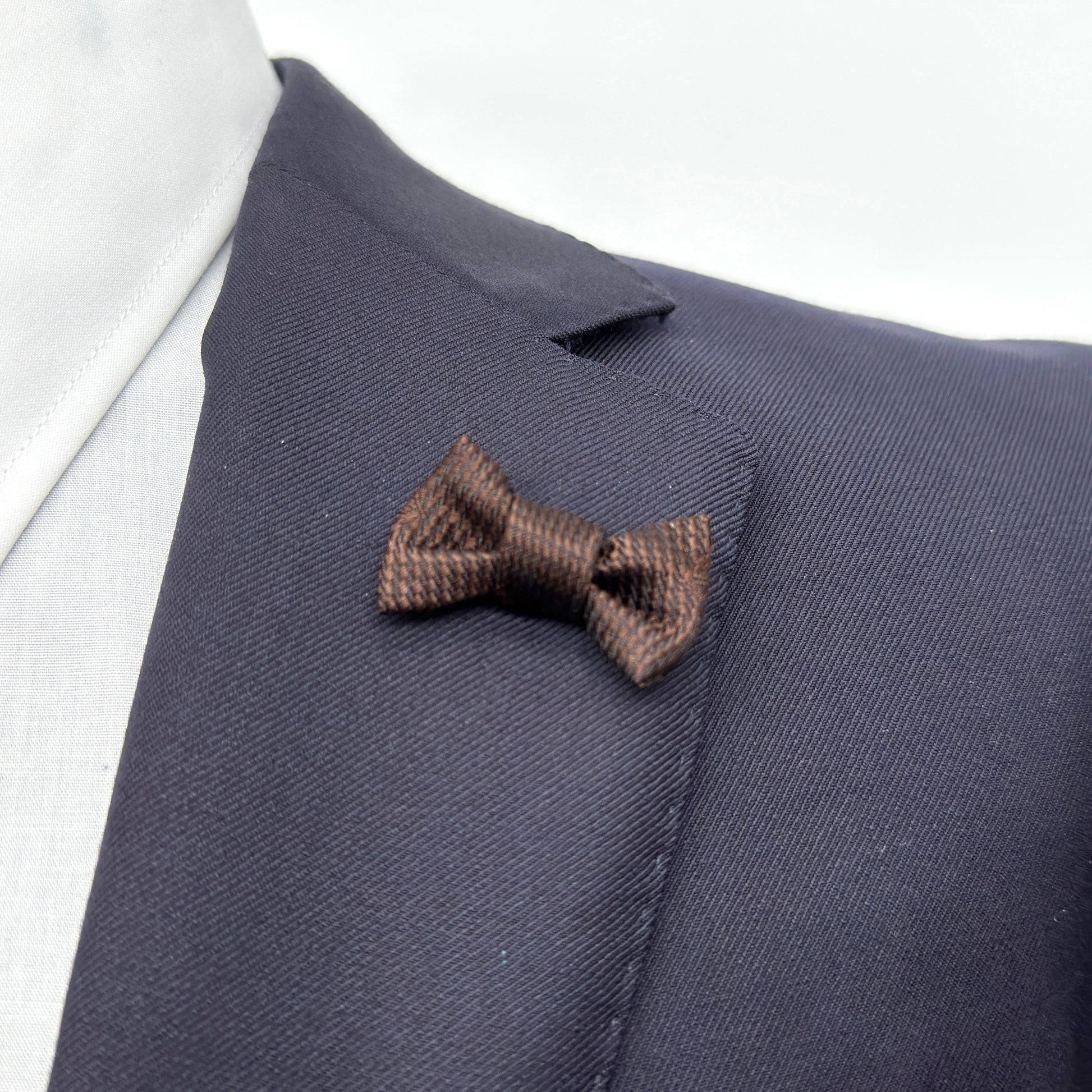 ネクタイシルクを使用した小さな蝶ネクタイ型のタイタックピンです。