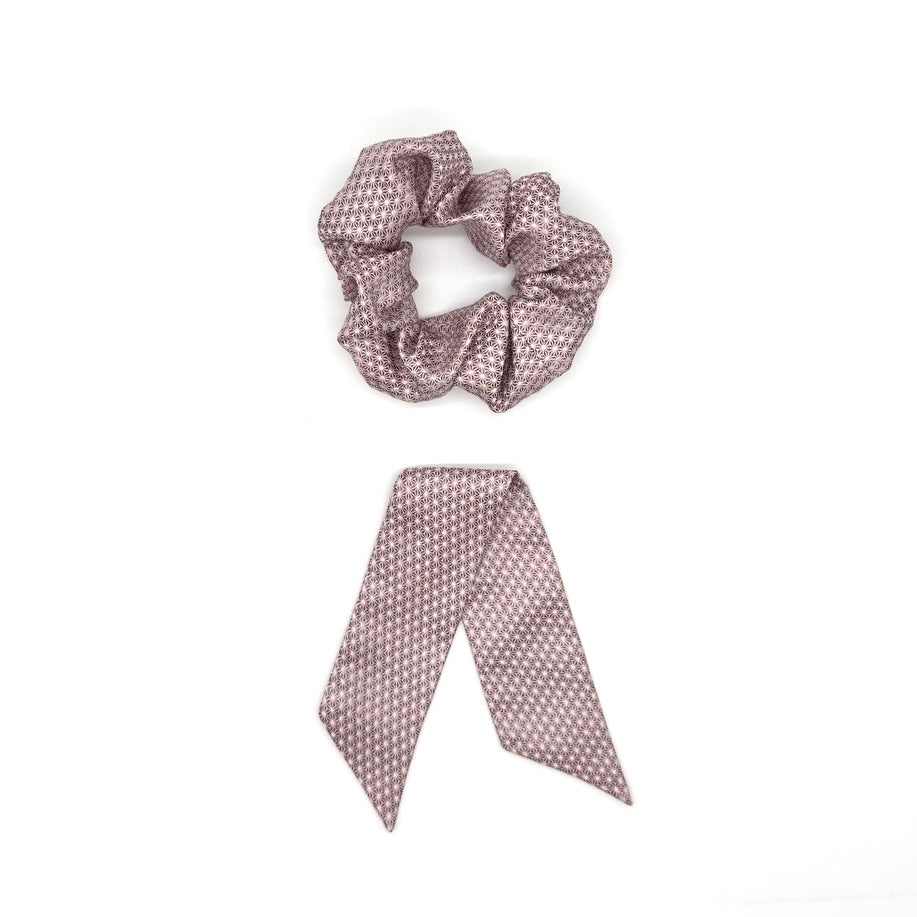 美しさと機能性を兼ね備えたシルクシュシュ。シュシュ本体とリボンは取り外しが可能です。気分に合わせて結んだり外したりして使ってください。