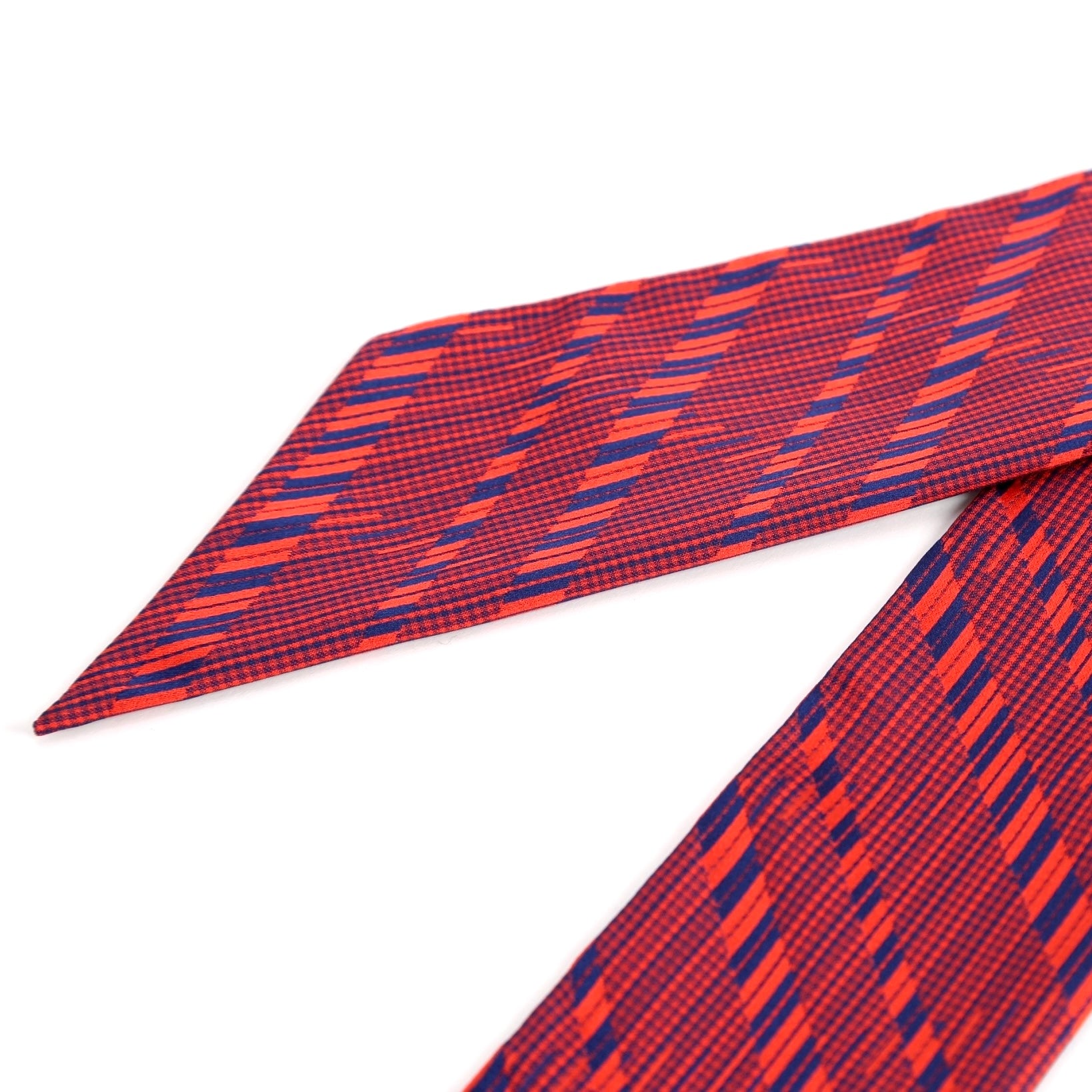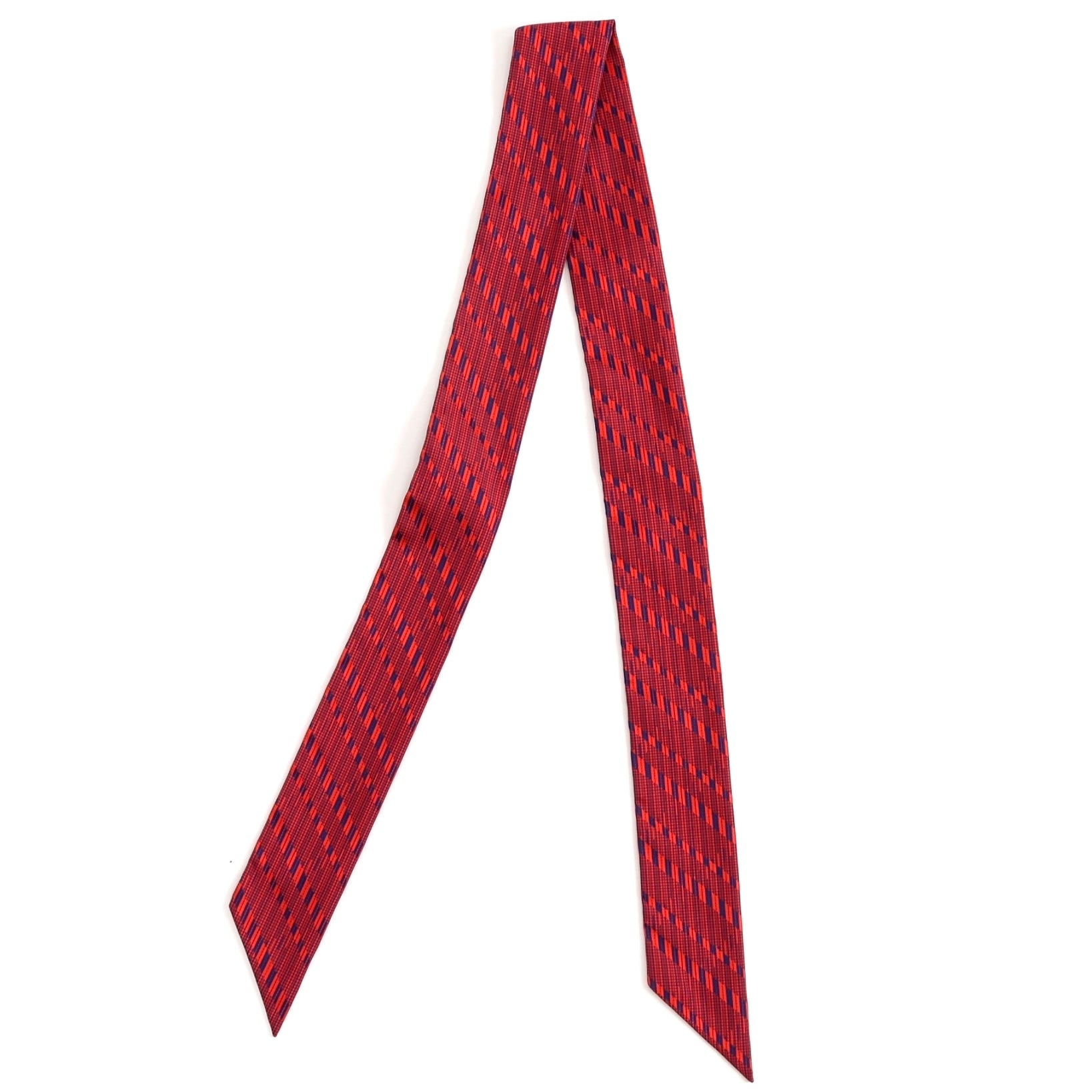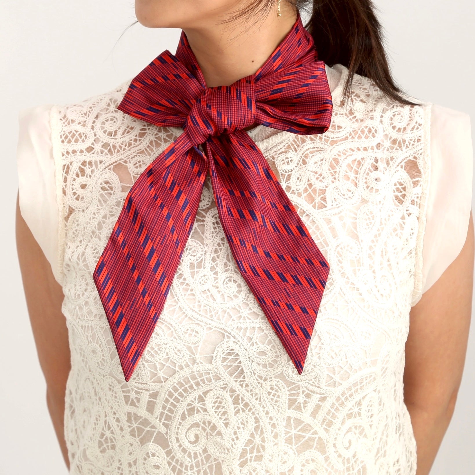 【限定数】きものシルクの〈ロング〉リボンスカーフ 格子模様の赤紺(あかこん)