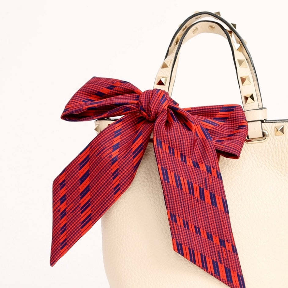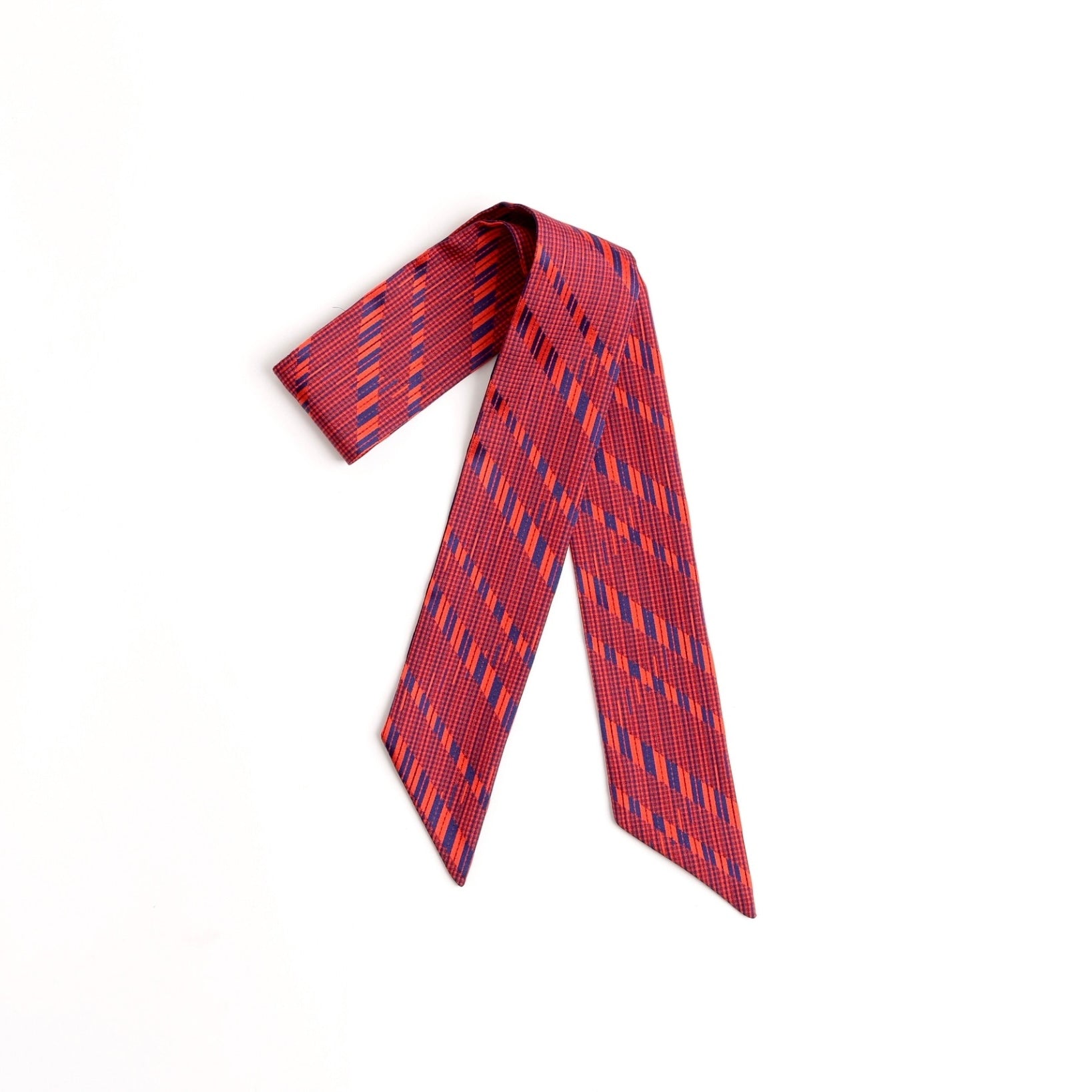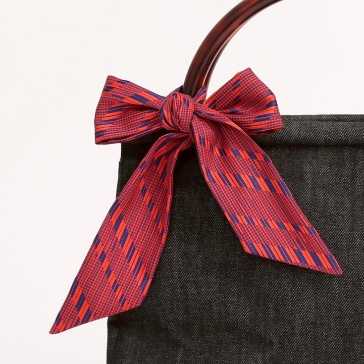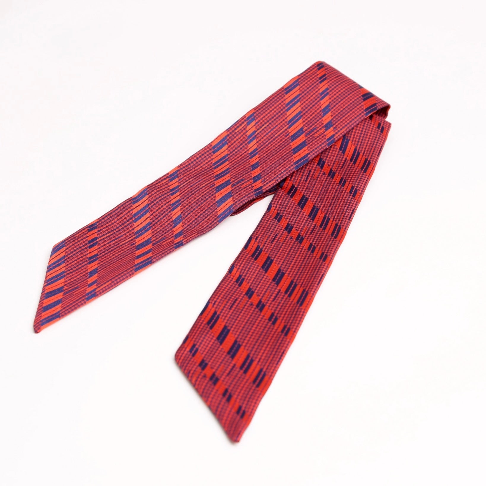 【限定数】きものシルクの〈ショート〉リボンスカーフ 格子模様の赤紺(あかこん)