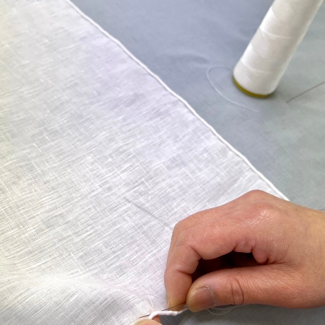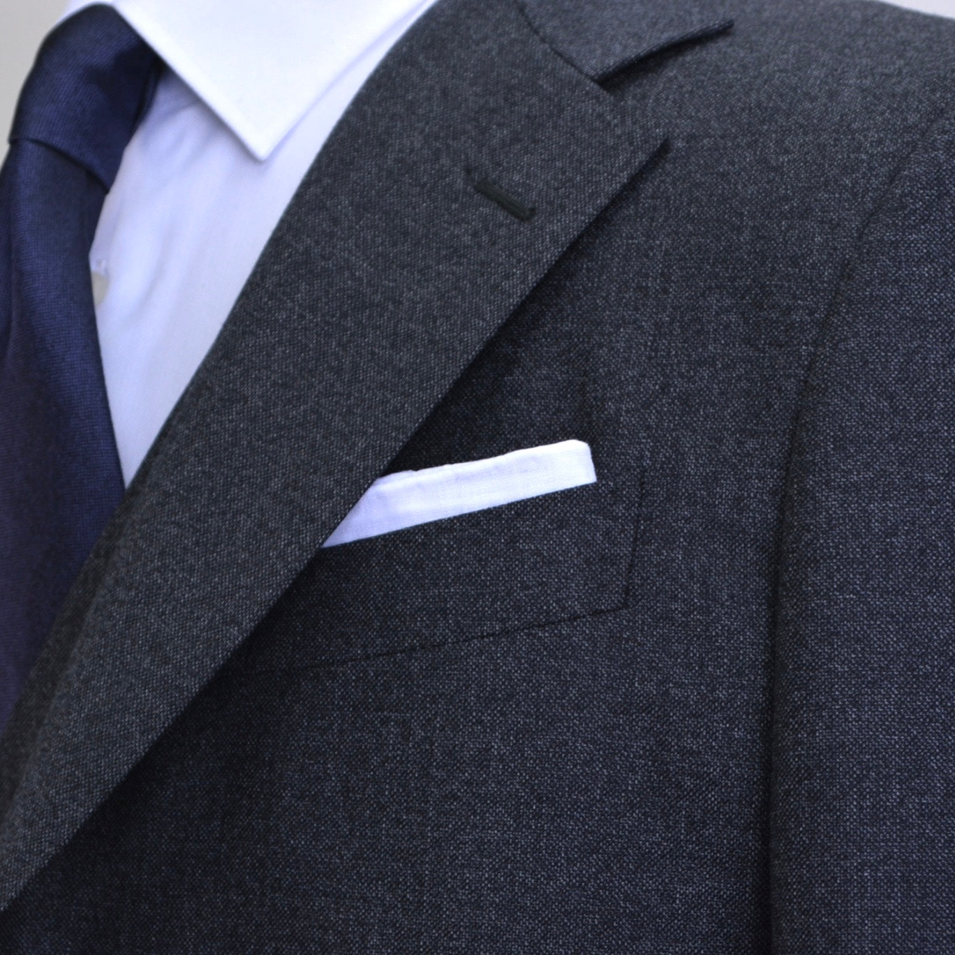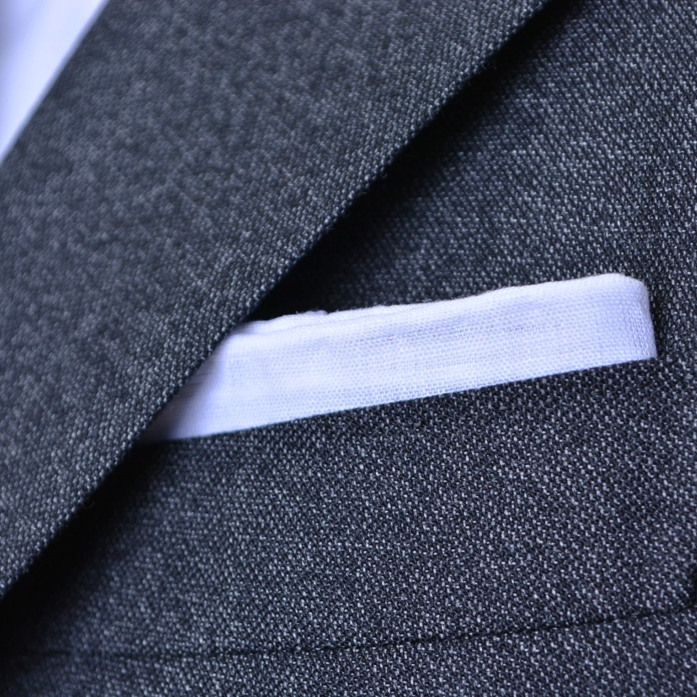 リネンのポケットチーフ。必ず1枚は手元において、あらゆるシーンにご活用下さい。挿し方はTVホールドをおすすめします。※縁部分は1枚1枚手巻きの手縫いで仕立てております。