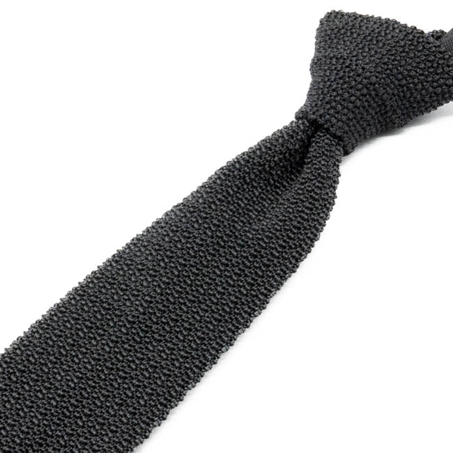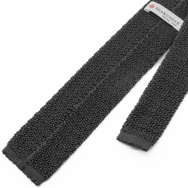 ニットタイは編み物 である点が一般的なネクタイとの大きな違いですが、他にも違う点があります。 それは、ネクタイの剣先(先端)の形状です。 一般的なネクタイは先端が三角形に尖っていますが、ニットタイは四角形になっているものが多いです。 そのことで柔らかな印象が生まれ、親しみやすさを感じさせます 。