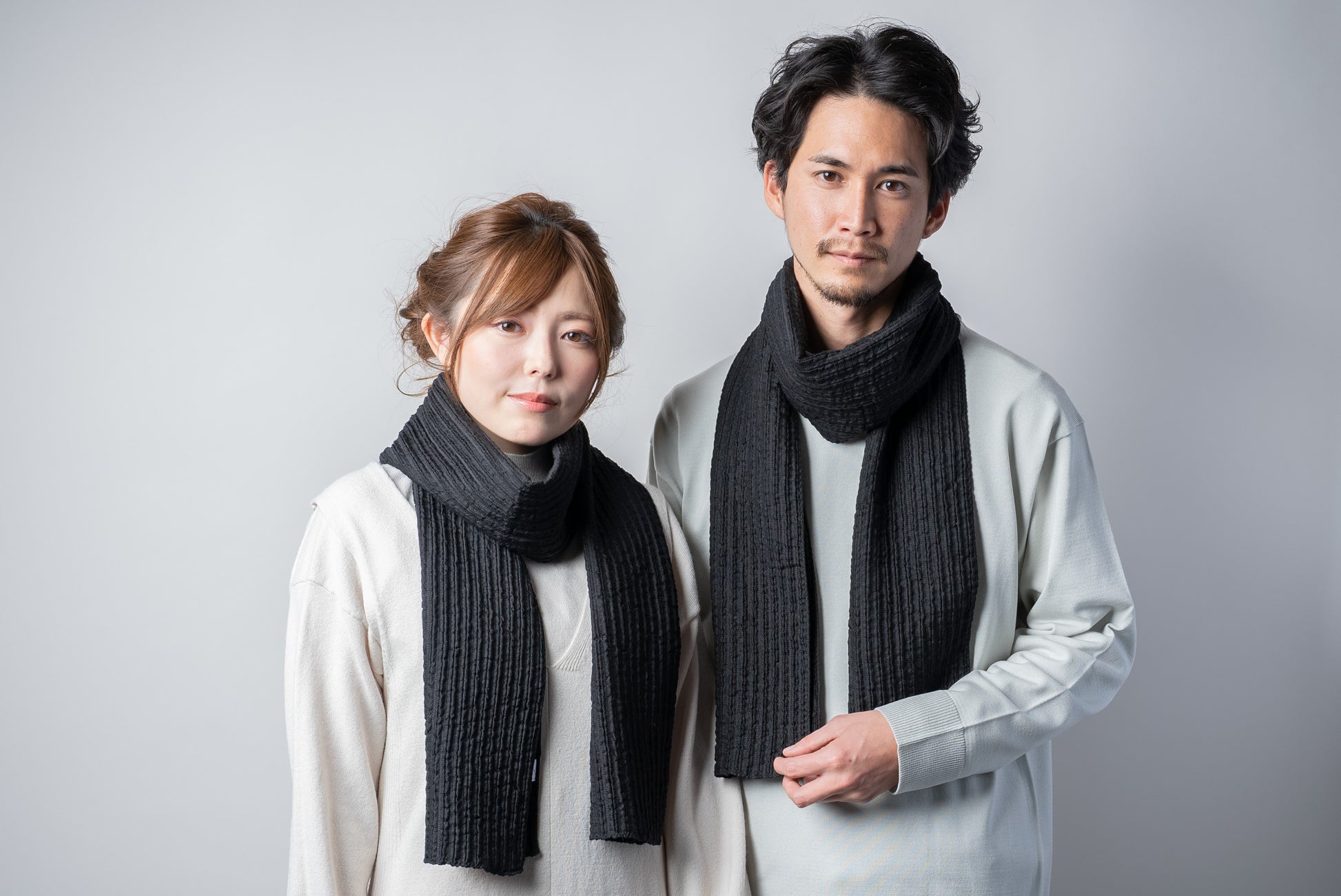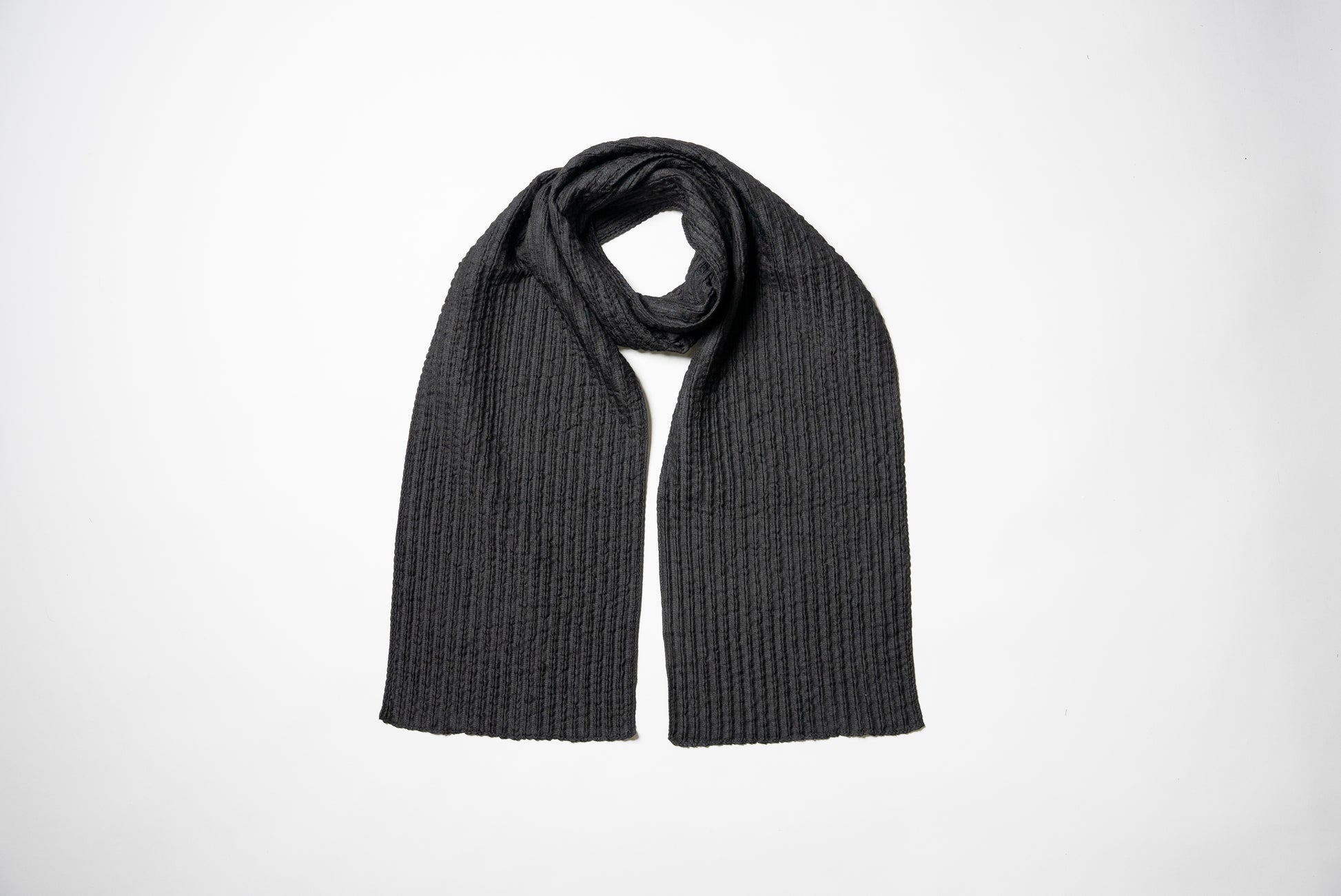 温かく軽い「風通織り」をベースに作られた生地。エアリー感(空気感)があり『保湿性』『保温性』にも優れつつ、シルクのさらっとした肌触りと、独特なシワ加工(リンクル加工)のふんわり感と高級感がオシャレさを一段階アップさせます。