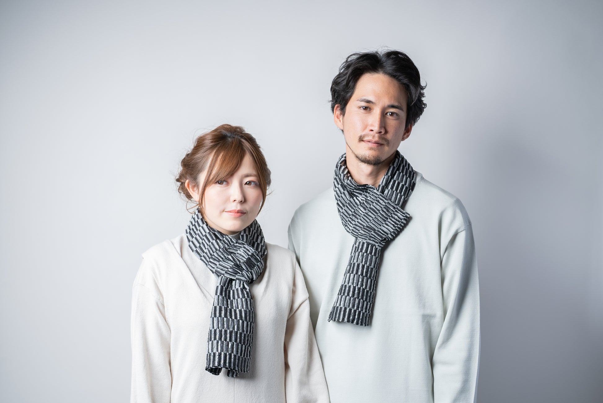 ホールタイプは2つ折りで作られており、折部分を”輪っか状”に加工しております。その部分に反対側を通すだけで簡単に首に巻くことができるストールです。