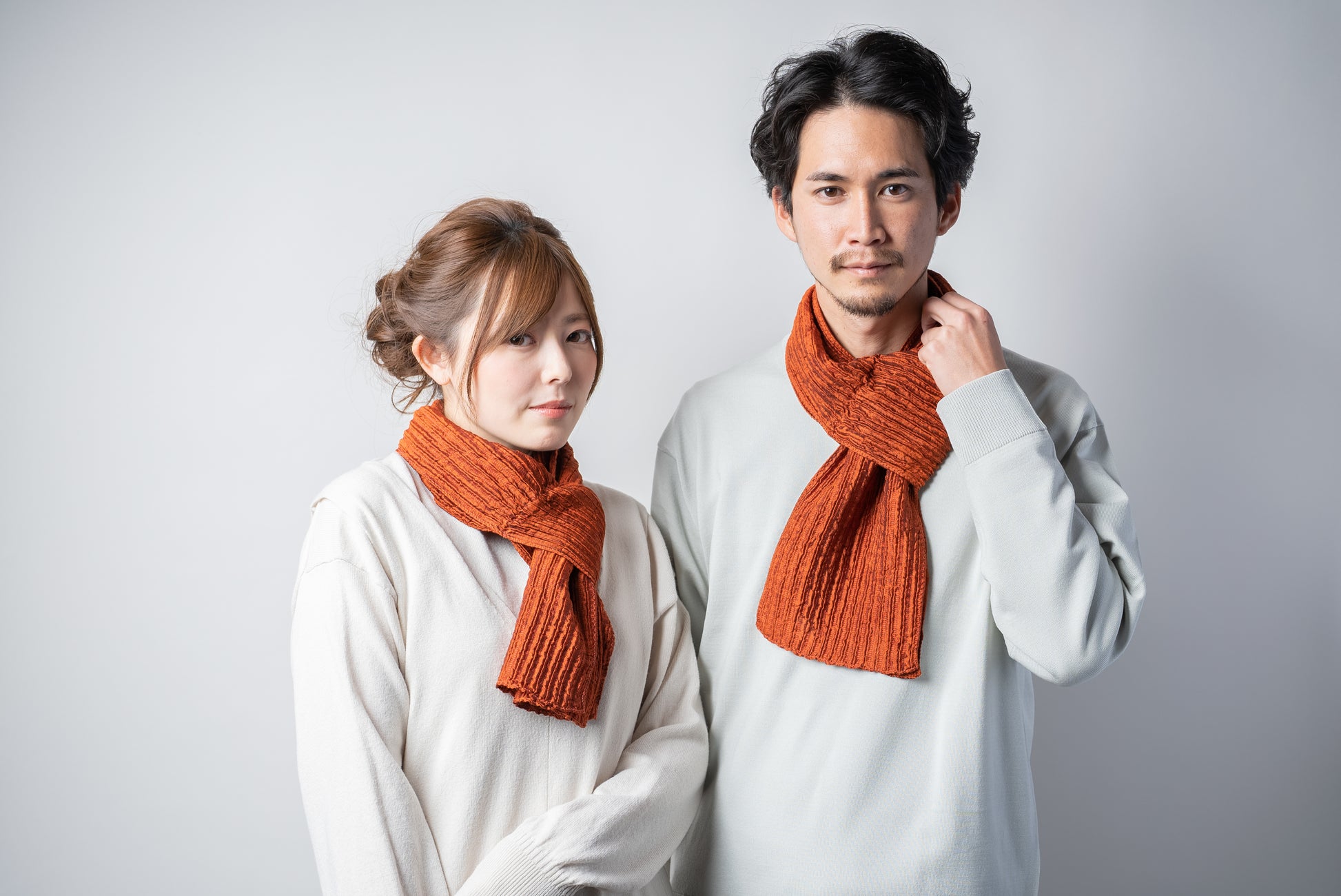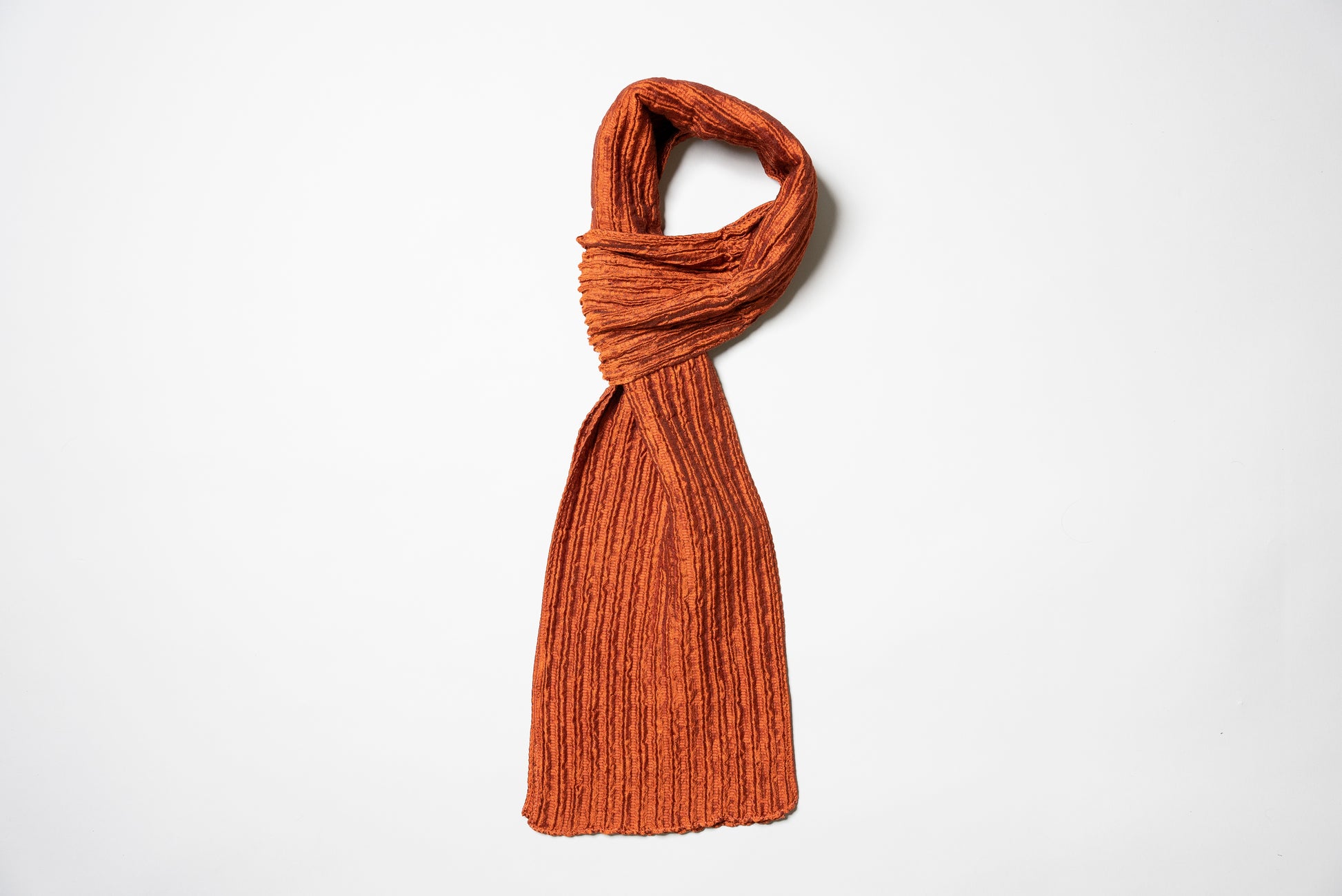 「結ぶ」などしなくても巻け、スマートに着こなすことができるリンクル加工(シワ加工)のシルクストール。