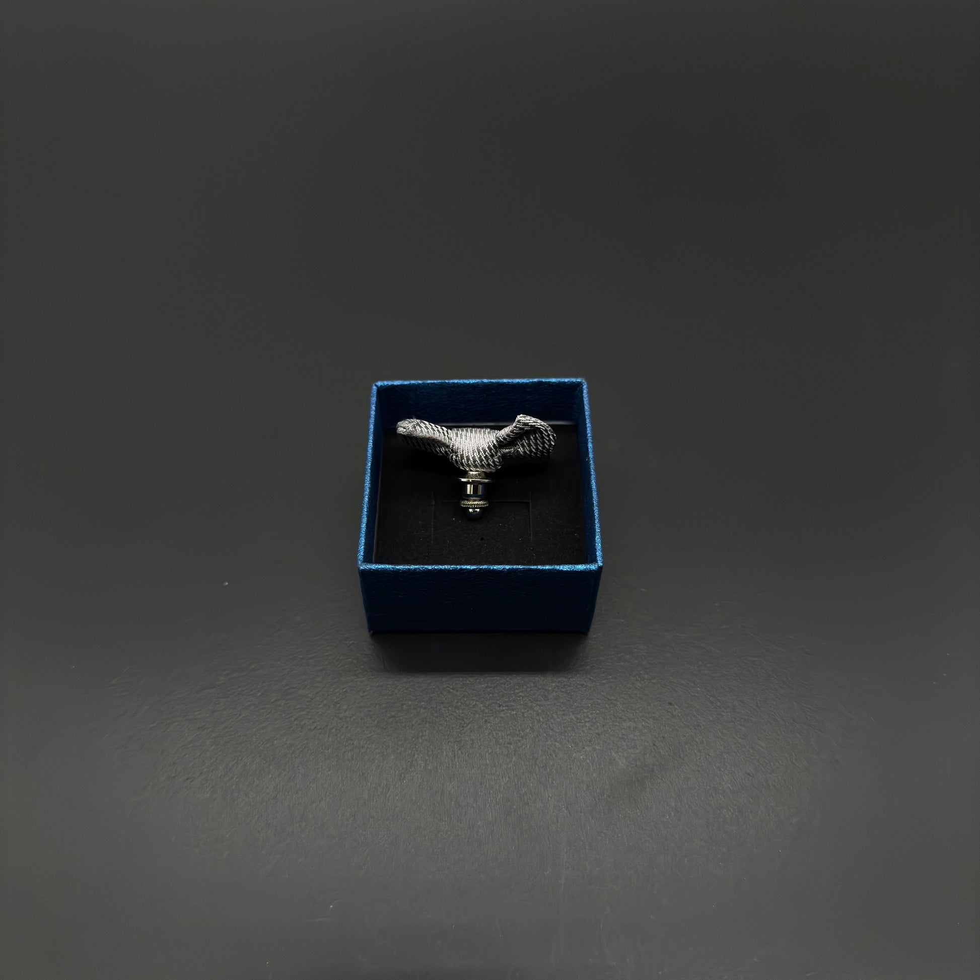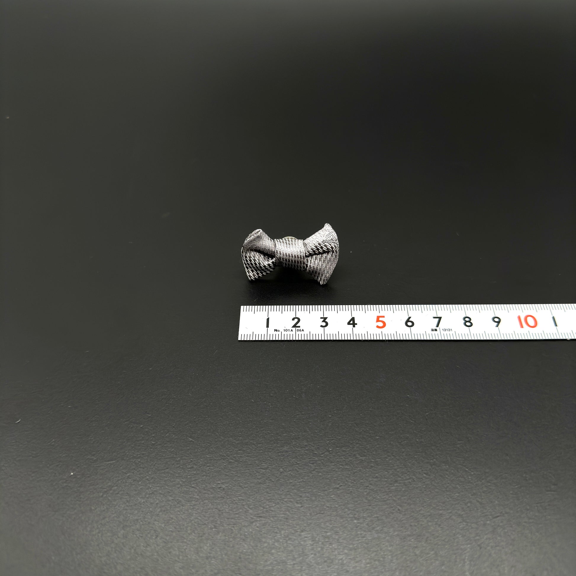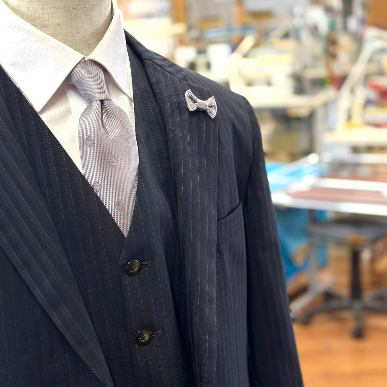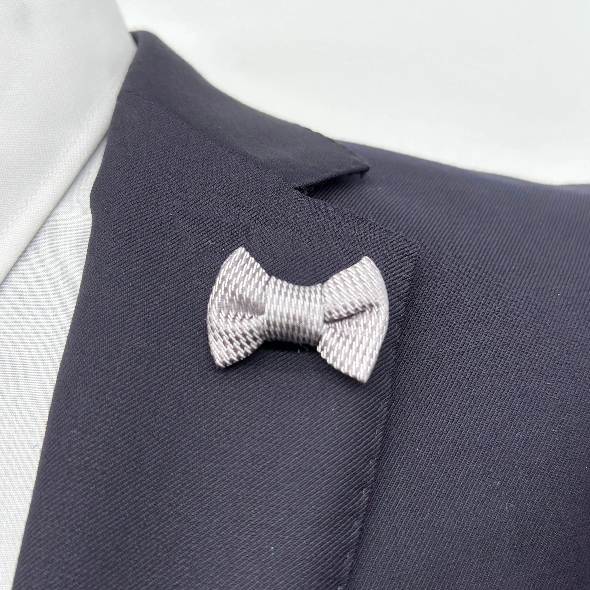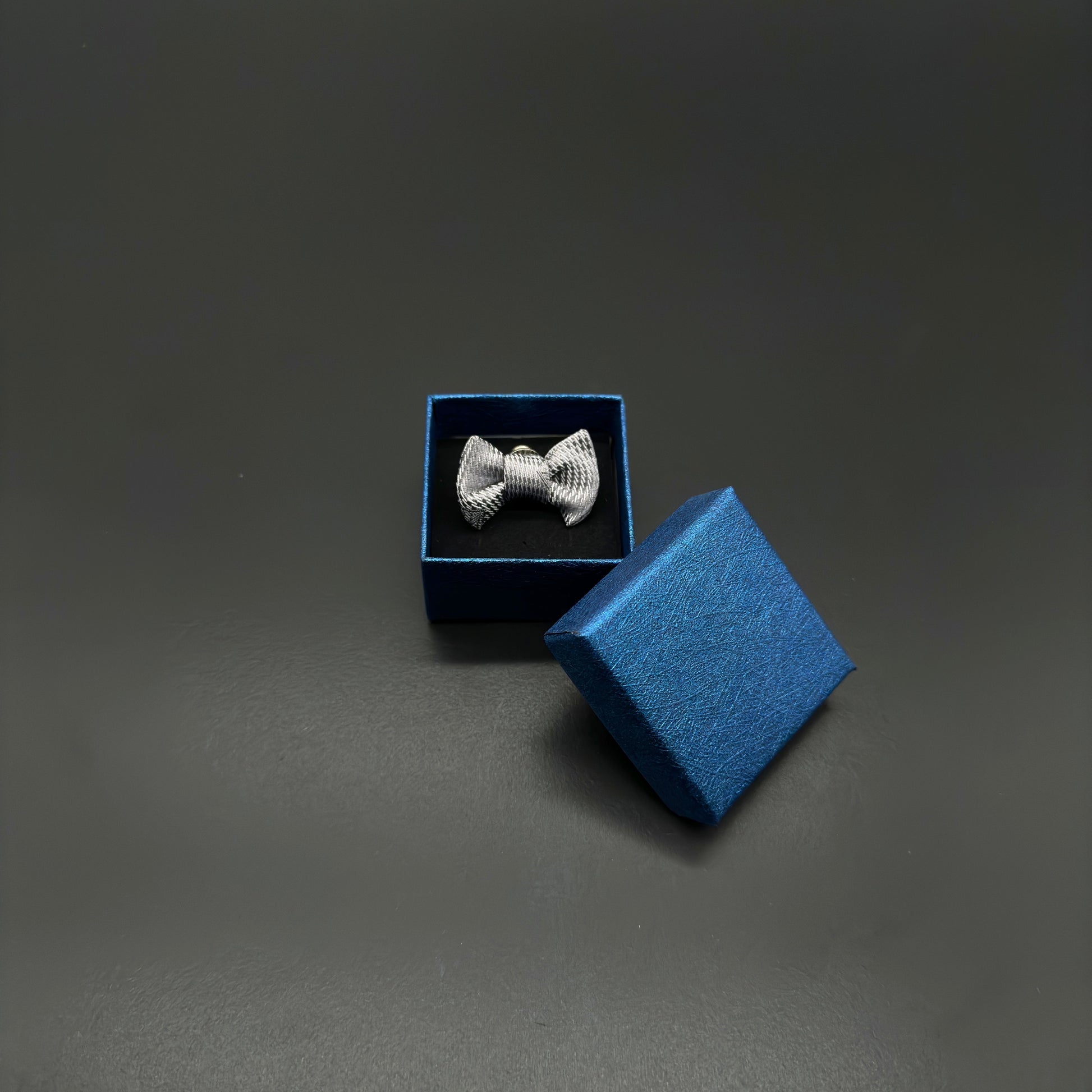 ネクタイシルクを使用した小さな蝶ネクタイ型のタイタックピンです。